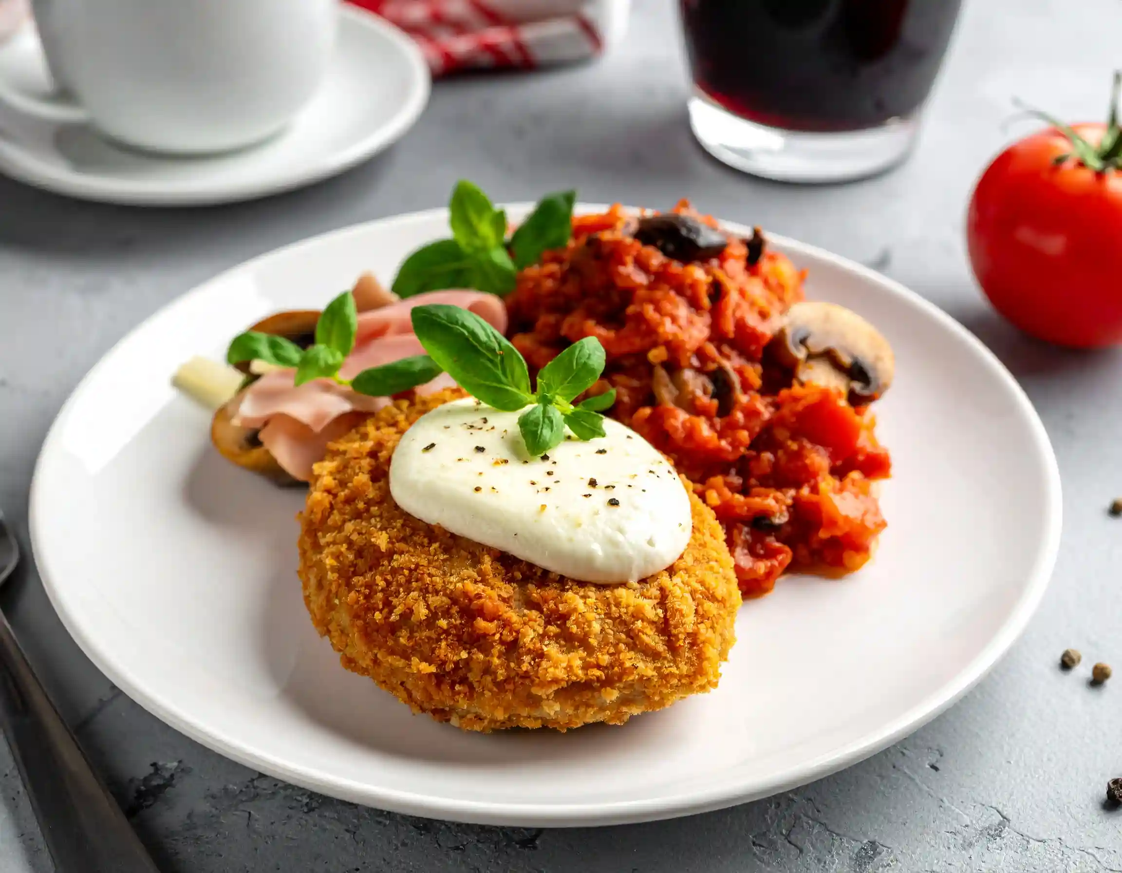 Escalope de poulet, Sauce tomate, Reblochon, Jambon cru